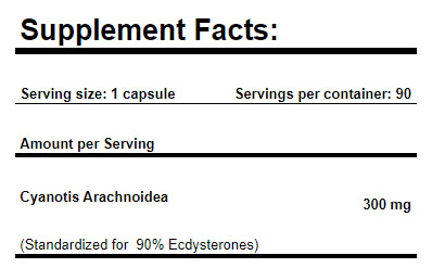 Ingredients: Cyanotis Arachnoidea, gelatin capsule (made from pure gelatin, water, dye: titanium dioxide), stabilizer: hydroxypropylmethylcellulose Methocel®, anticaking agents: magnesium stearate, silicon dioxide